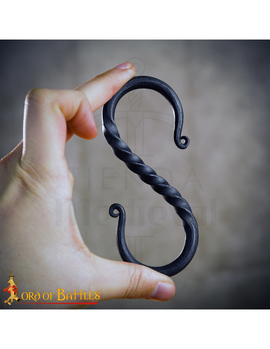 O design em 'S', com corpo torcido e as extremidades adornadas com pequenos enrolamentos, oferece uma fixação segura e uma manipulação simples, para que montar e ajustar sua cozinha campestre seja rápido e sem complicações. Por não depender de mecanismos frágeis, seu uso frequente em excursões, acampamentos ou eventos de recriação histórica traduz-se em confiança e em menos preocupações a cada saída.