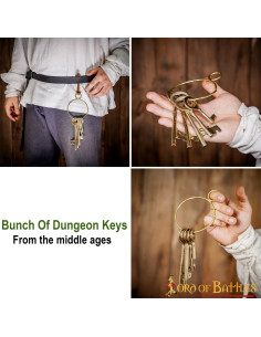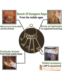 Essas chaves adicionam um toque autêntico às suas aventuras de dramatização e reconstituição. Seu material de latão sólido garante durabilidade e realismo, permitindo que você mergulhe na experiência como nunca antes. Imagine pendurar este conjunto de chaves em seu cinto, capturando a essência dos tempos medievais com cada movimento.