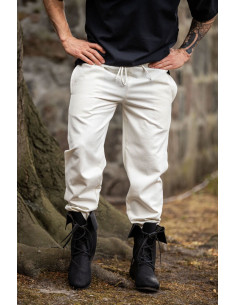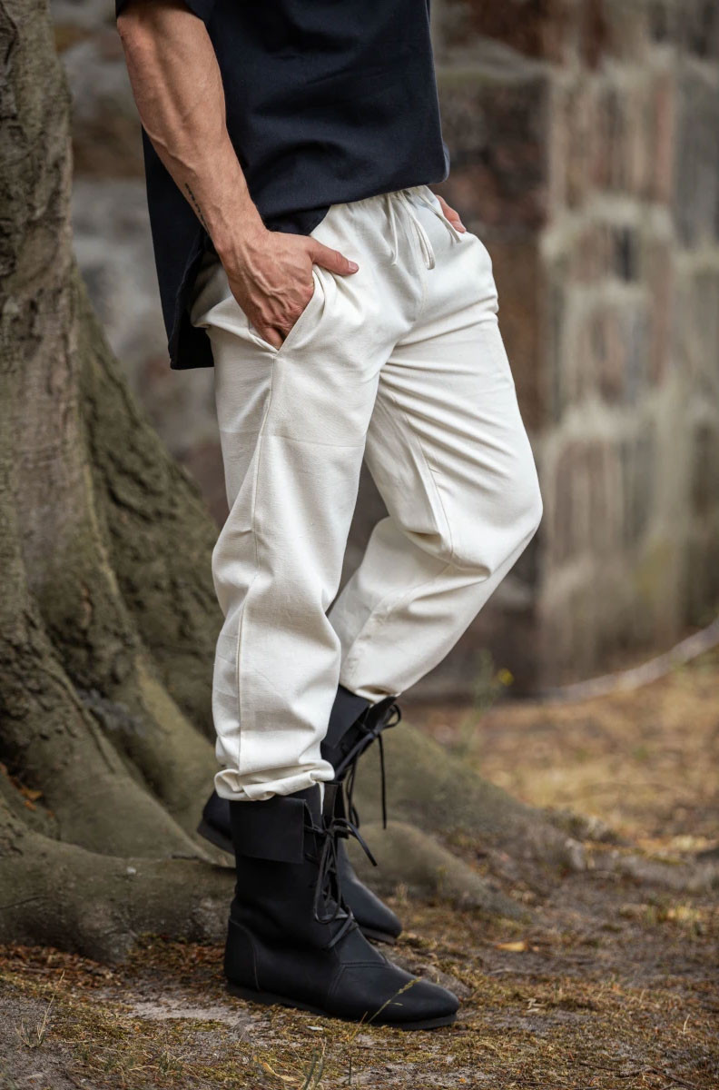 Calças medievais unissex de cor natural com elástico na cintura