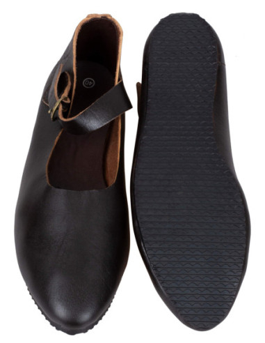 Botins medievais de pele com atacadores - Preto