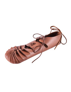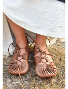 Sandálias romanas de couro marrom, com fecho de cadarço