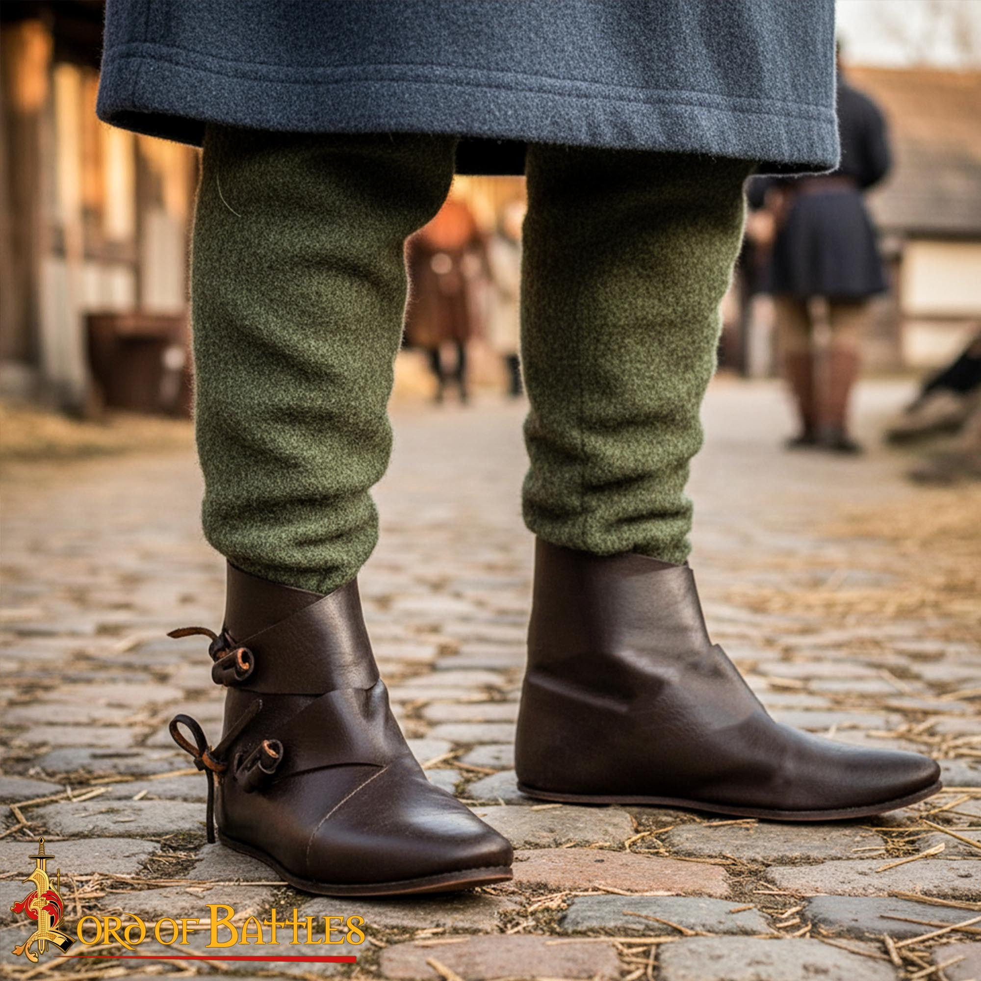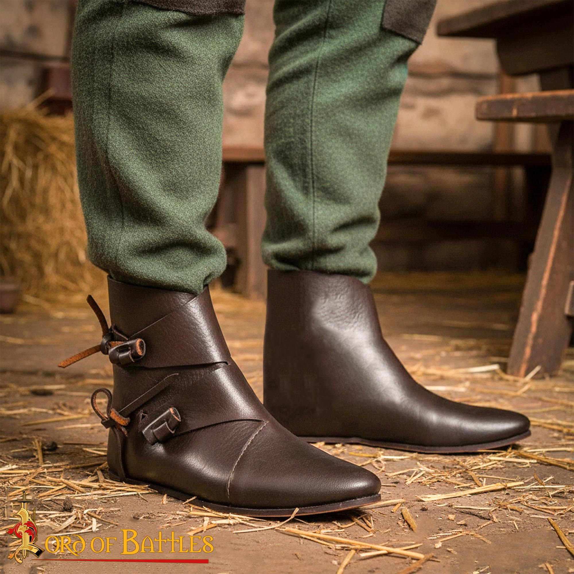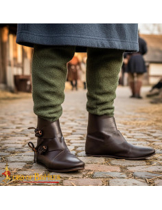 Botas medievais altas com fecho de fivela, marrom