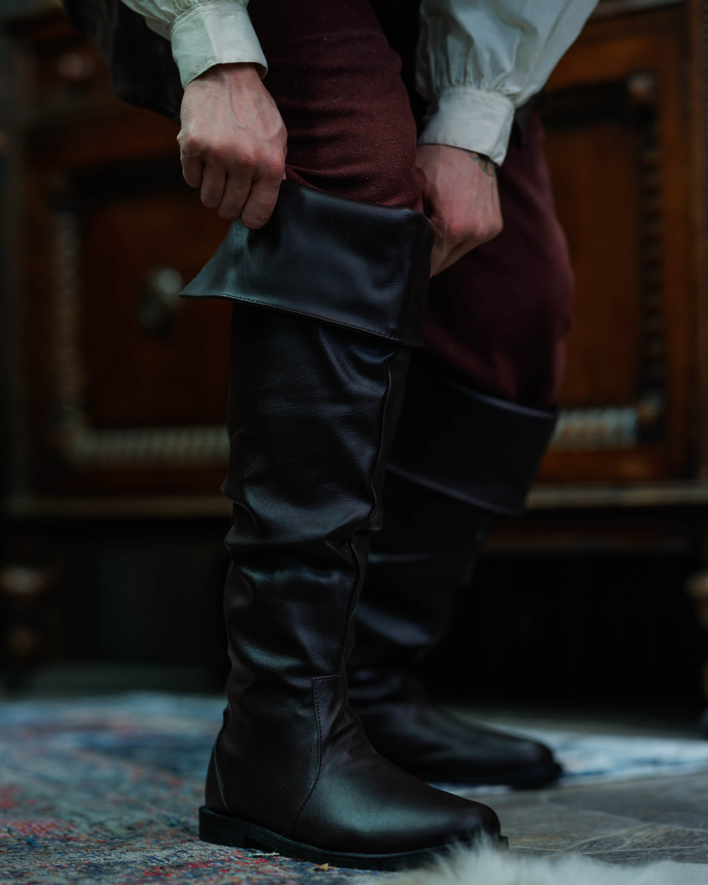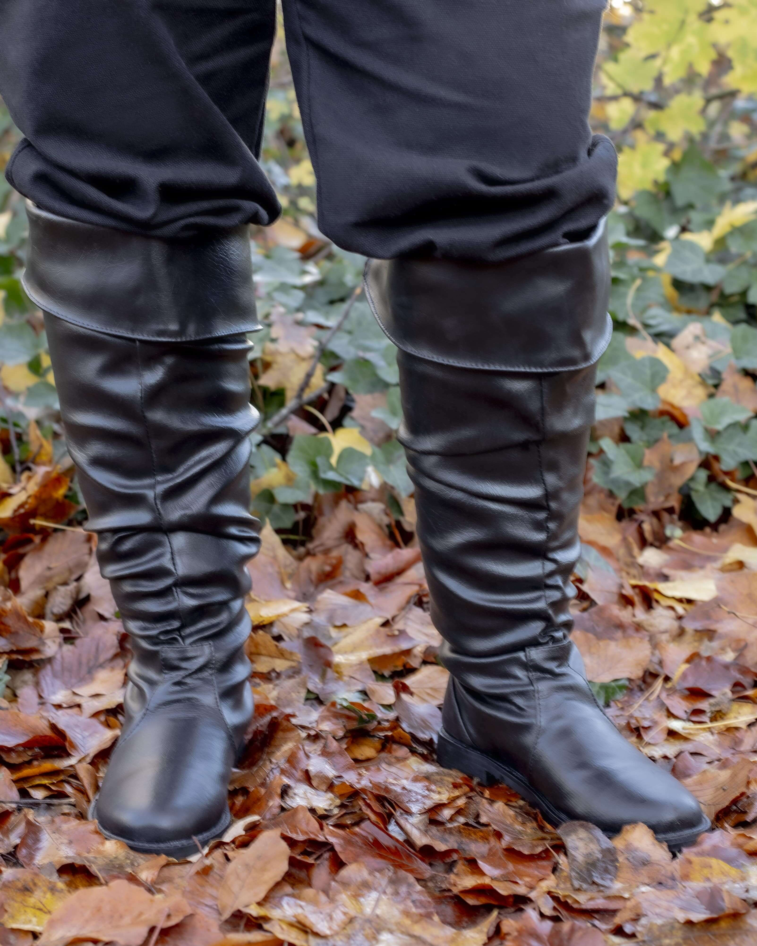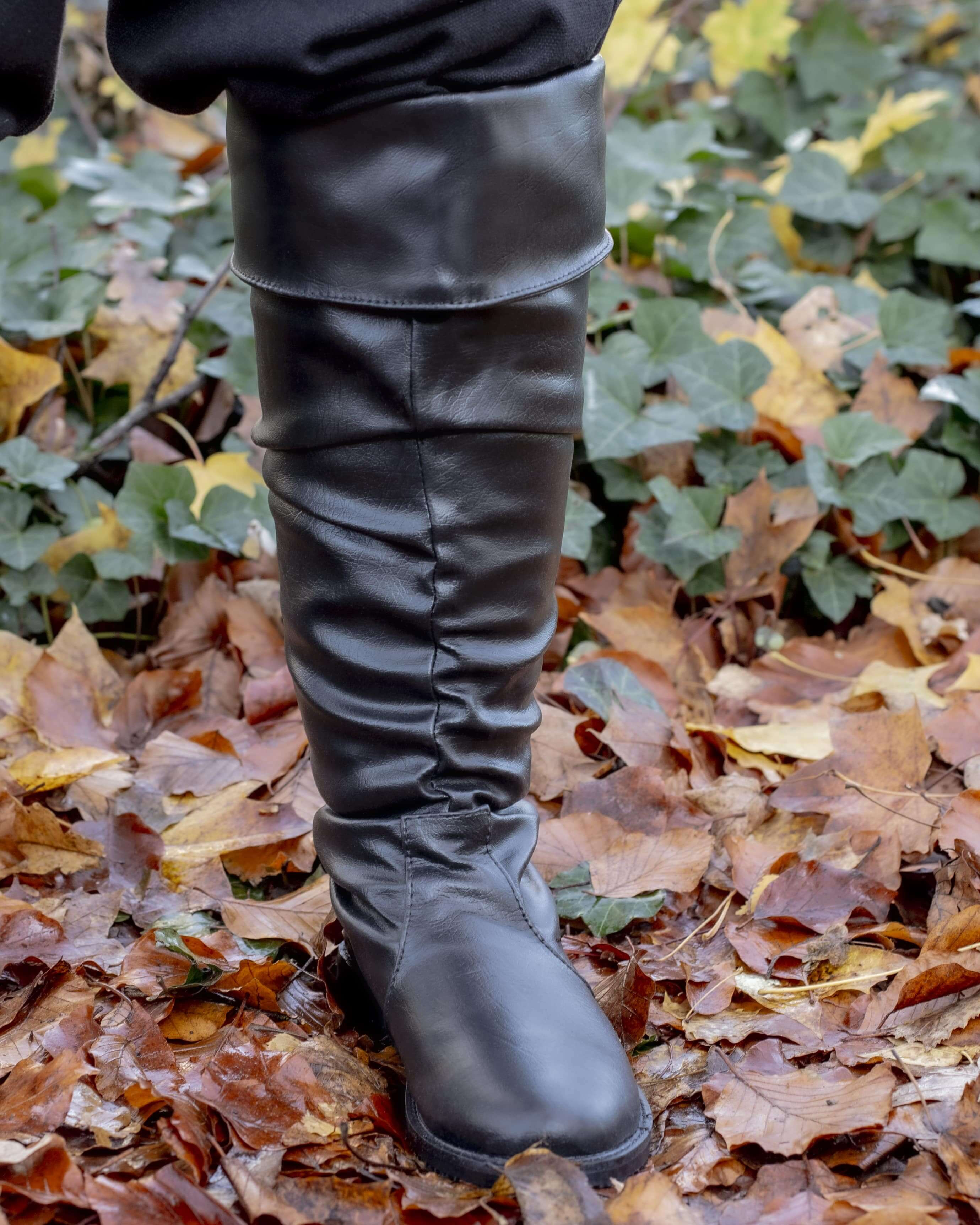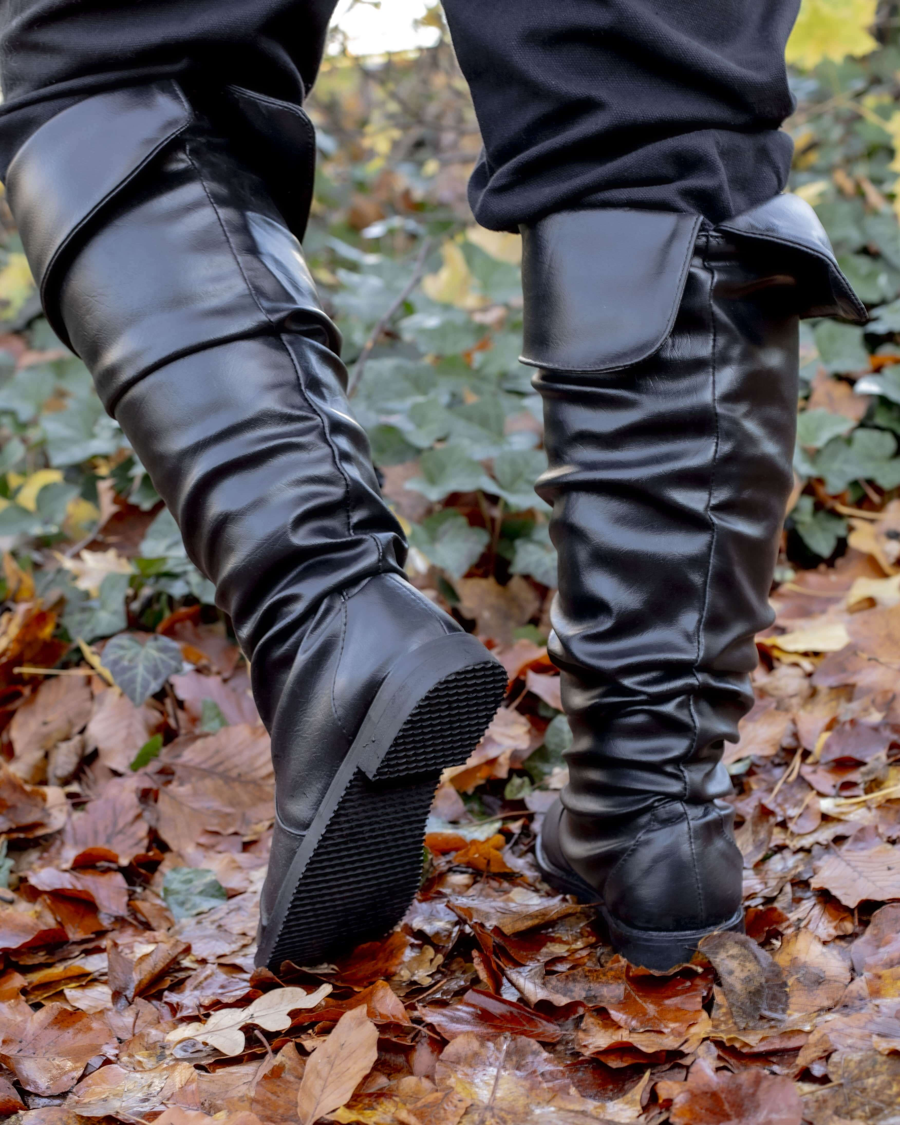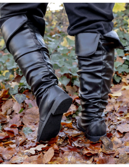 Botas altas medievais com fecho de fivela lateral