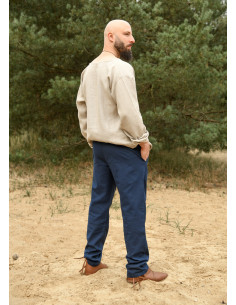Está à procura de conforto e estilo em uma única calça? Esta calça medieval Hagen em azul é a opção perfeita para quem deseja um toque autêntico sem sacrificar a funcionalidade. Seu design simples e versátil a torna uma peça indispensável no seu guarda-roupa, ideal tanto para eventos temáticos quanto para uso diário com um ar medieval.
