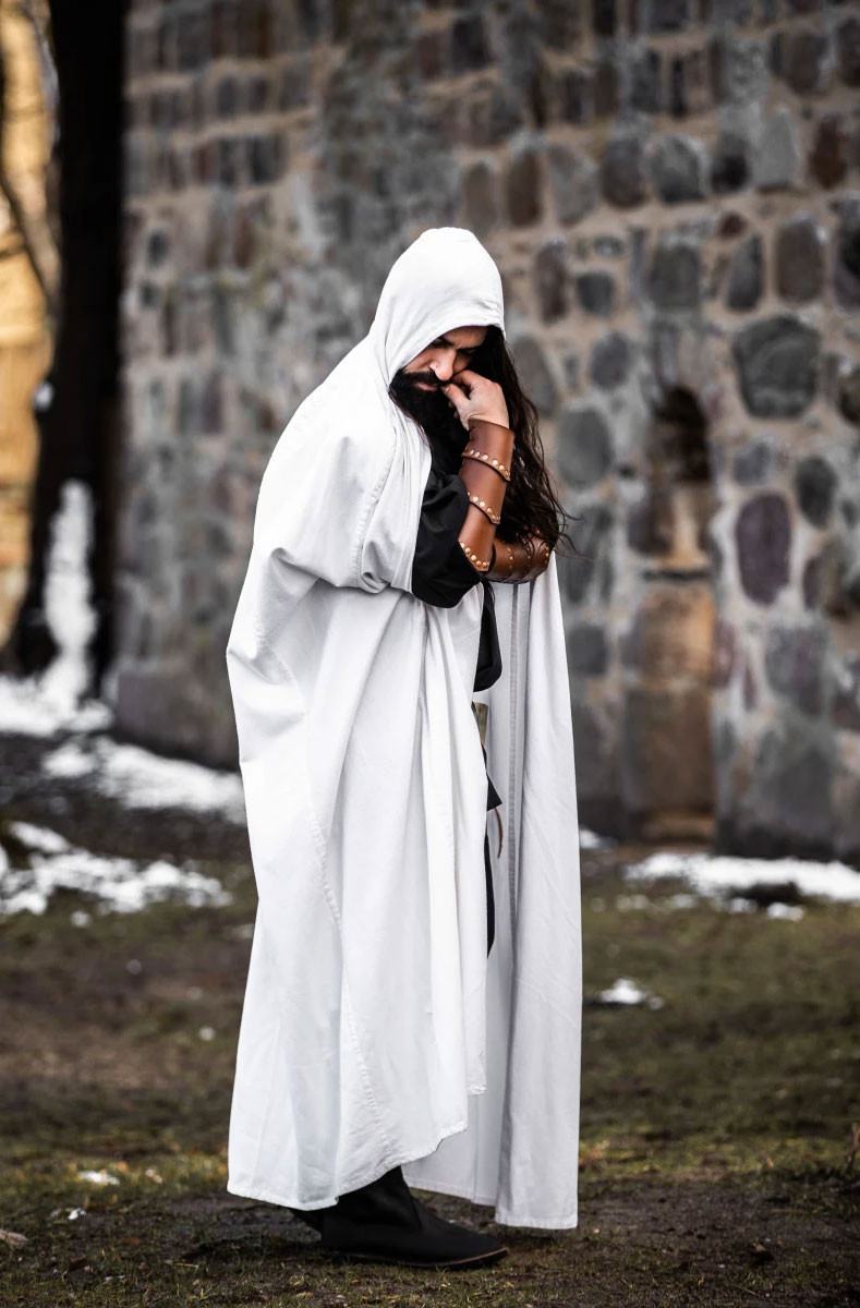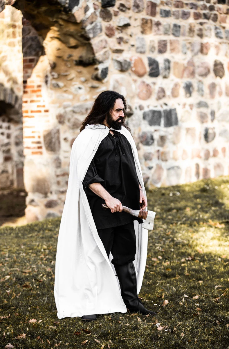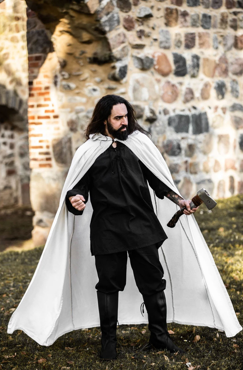 Capa medieval longa branca, modelo Gunnar