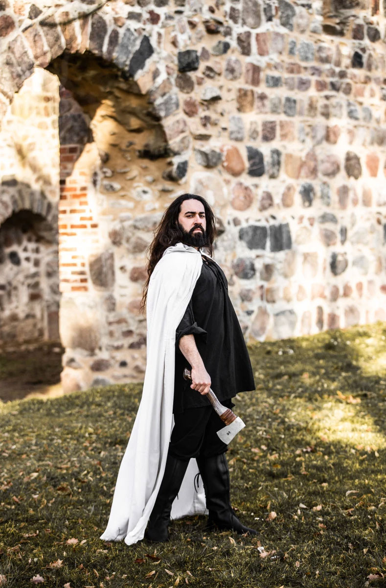 Você está procurando uma capa medieval que a deixe elegante e sofisticada em seus eventos de época? A capa medieval longa branca modelo Gunnar é exatamente o que você precisa.
