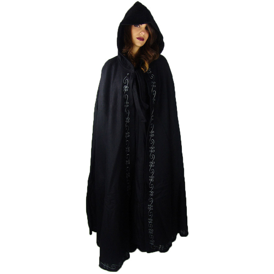Consulta sobre Capa medieval comprida com bordado modelo Marta, preta 160 cm.