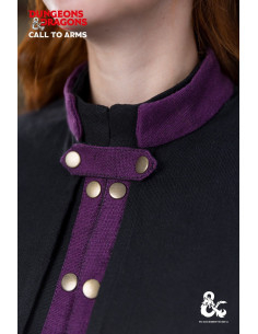 Descubra o Dungeons and Dragons Warlock Short Cloak em preto e roxo para aumentar seu poder místico! Esta capa de bruxo apresenta uma gola alta contrastante que adiciona um elemento de intriga à sua presença mágica.
