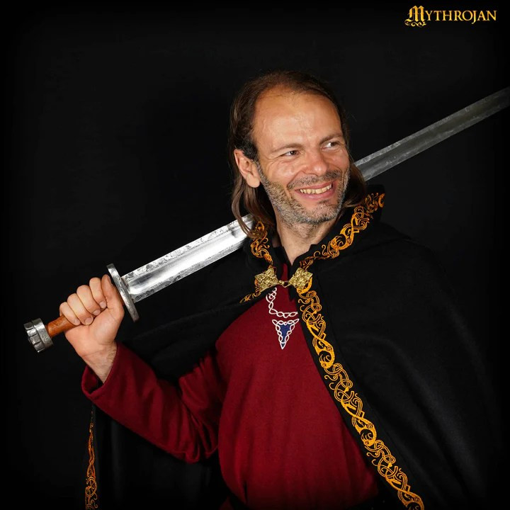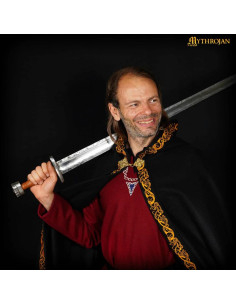 Esta capa medieval de lã preta, com bordas decoradas e broche de latão maciço, é muito mais do que um acessório. Ele foi projetado para acompanhá-lo em qualquer evento épico ou reconstituição histórica, seja em um banquete de casamento medieval ou no calor de uma batalha fictícia. Feito com lã de alta qualidade, oferece durabilidade e conforto, superando completamente as camadas baratas que duram apenas uma noite.
