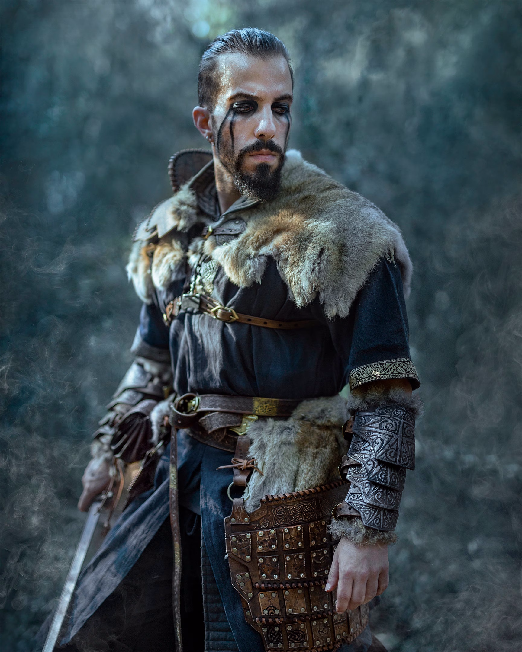 Se você é apaixonado pelo mundo do RPG ao vivo (LARP), pela recriação histórica ou por eventos temáticos, a capa guerreiro viking Fenrir de El Marqués del LARP será sua aliada perfeita. Fabricada com pele de coelho natural autêntica, esta peça se destaca não apenas pela sua qualidade, mas também pelos seus detalhes cuidadosamente elaborados. As placas gravadas de couro e a alça com efeito envelhecido conferem um ar rústico e genuíno que evocará as incursões do seu clã viking.