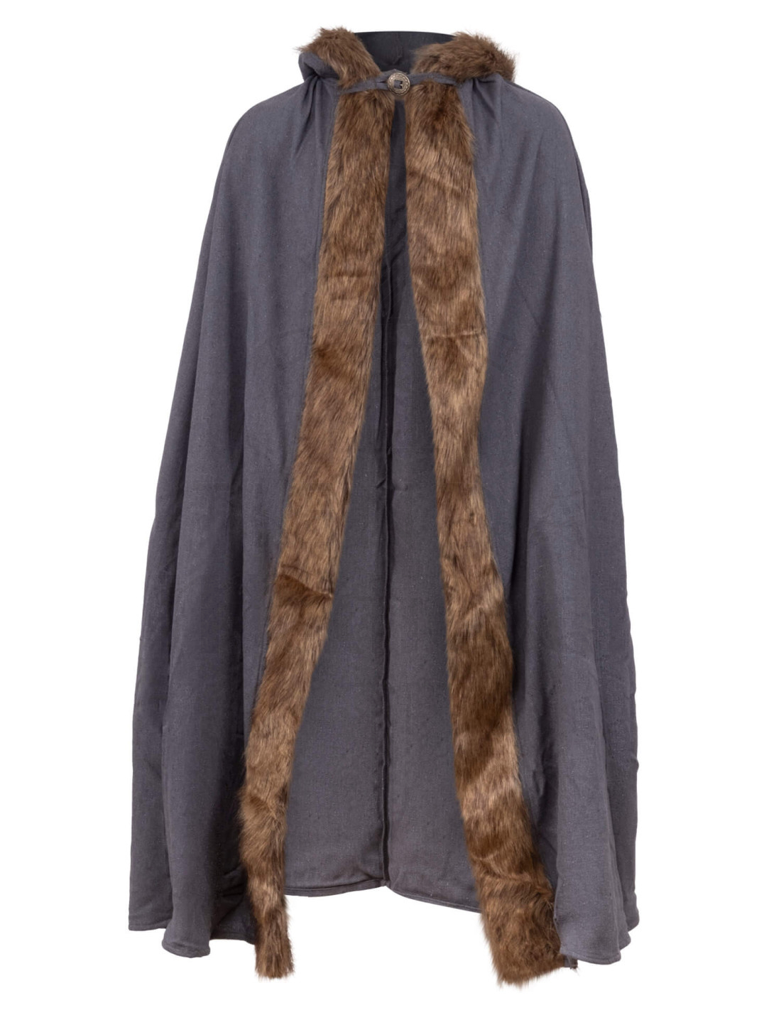 Fabricada em um algodão resistente, esta capa oferece uma proteção eficaz contra o vento e a chuva, permitindo que você se apresente com conforto e autenticidade em seus eventos ou recriações medievais. Seu design amplo e solto garante liberdade de movimentos, enquanto o capuz profundo, adornado com uma borda de imitação de pele fina em marrom, adiciona um toque rústico e elegante. A união frontal com botão assegura um ajuste seguro e fácil de colocar e tirar.