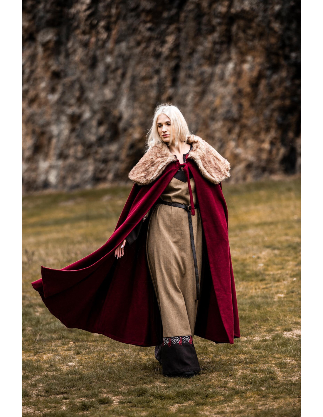 A Capa Vikinga Unissex Modelo Janne, cor vermelha, combina tradição com estilo contemporâneo, permitindo que cada um assuma seu próprio papel na aventura.