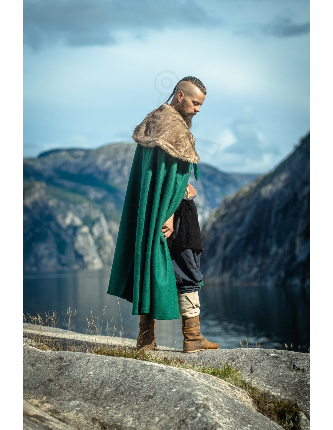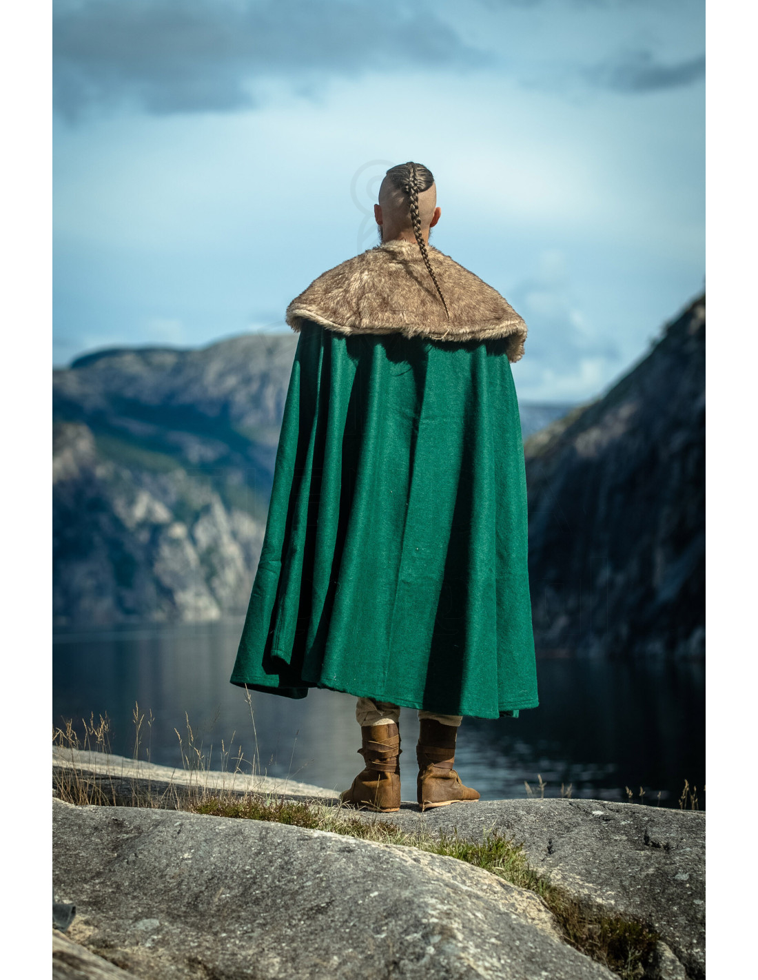 A Capa Vikinga Unissex modelo Janne foi concebida para envolver, proteger e realçar sua figura sem complicações. Seu fechamento frontal garante um ajuste confiável, fácil de colocar e manter durante todo o dia, enquanto a linha limpa sem capuz deixa o pescoço descoberto para combinar com túnicas, armaduras leves ou roupas urbanas. O sobrecollo de pele sintética adiciona um toque de distinção, criando uma silhueta elegante que transmite caráter em qualquer ambiente.