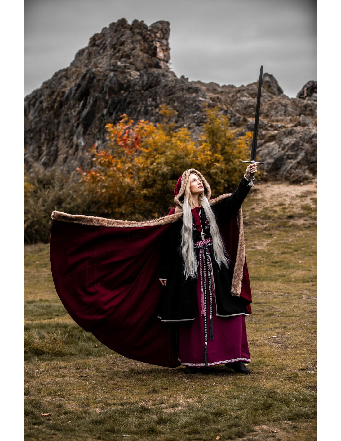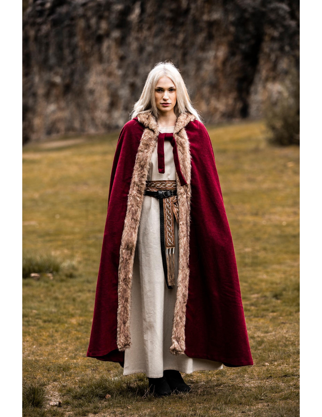 Se você está procurando comprar a Capa vikinga modelo Fjell em pele sintética, vermelha, encontrará uma peça pensada para quem valoriza presença e funcionalidade. O design oferece uma cobertura generosa que envolve sem limitar, ideal para mantê-lo confortável em dias frios ou chuvas leves, sem abrir mão de uma aparência impecável em feiras, eventos temáticos ou saídas informais.