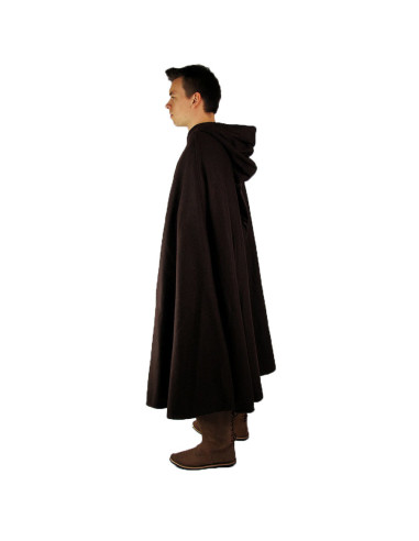 Capa medieval curta com fecho de fivela, modelo Ilmar, marrom 160 cm.