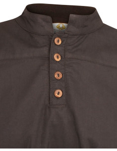 A tapeta de botões, elaborada com cocos naturais, adiciona um apelo rústico que distingue a camisa Bartold de outras opções. Este detalhe não é apenas visualmente encantador, mas também traz autenticidade, tornando-a a escolha ideal para feiras medievais e eventos de LARP (Live Action Role Play). As mangas largas e os punhos ajustados, também com botões de coco, permitem uma ampla gama de movimentos e conforto a todo momento.
