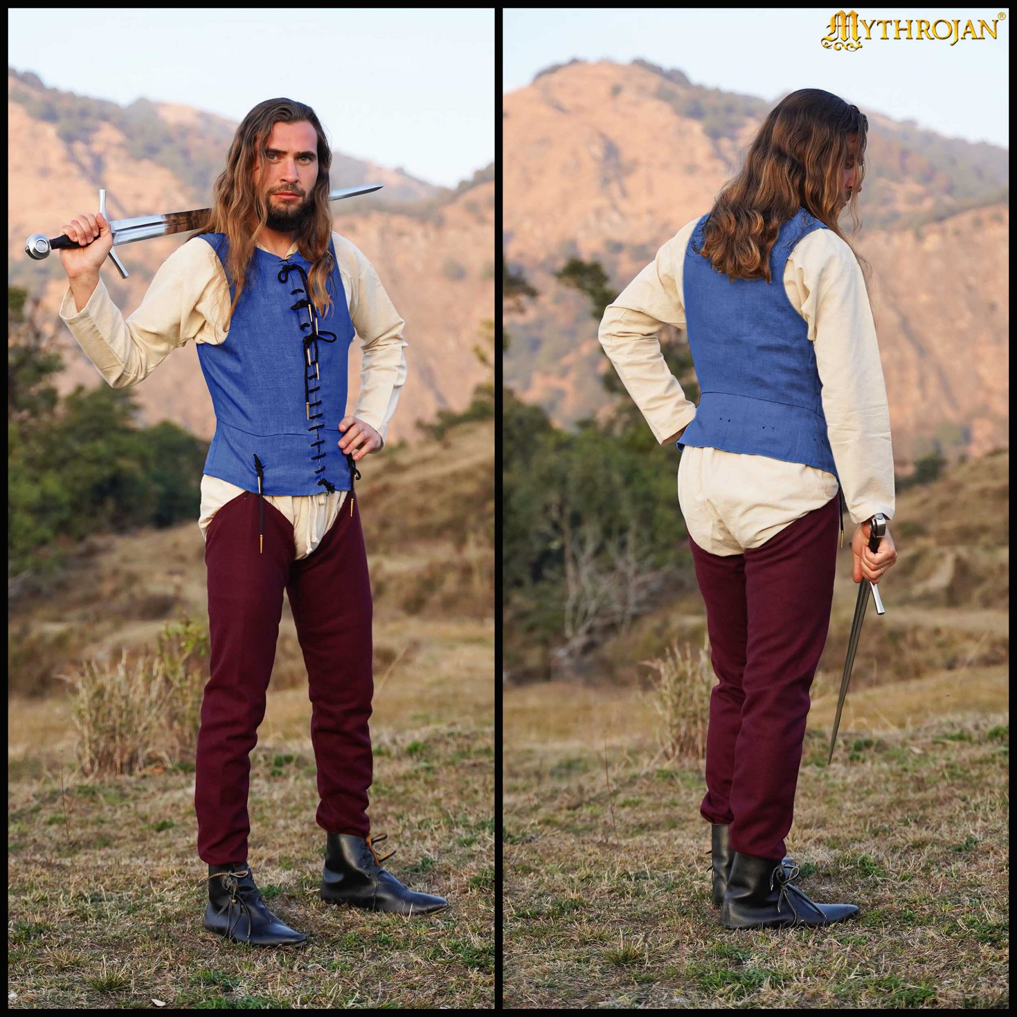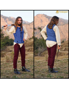 Descubra a 'Camisa medieval sem mangas na cor azul' da prestigiosa marca Lord of Battles, inspirada na era dos cavaleiros do período medieval tardio. Este design emblemático, baseado no **pourpoint** que os cavaleiros usavam sob a armadura nos séculos XIV e XV, combina autenticidade histórica com praticidade moderna, sendo indispensável para quem desfruta de recriações históricas, eventos LARP e atividades da SCA.