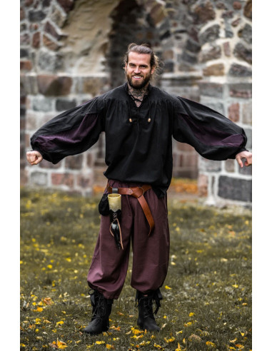 Camisa medieval Landsquenet modelo Albert, preto-castanho