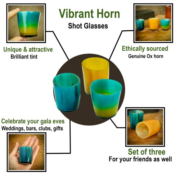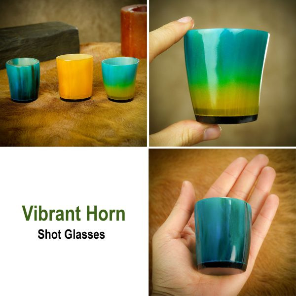 Este conjunto de 3 copos de shot é simplesmente fascinante. Eles são feitos à mão de chifre bovino completamente GENUÍNO e de origem ética, tornando-os únicos. Cada copo tem capacidade total de aproximadamente 100ml, ideal para saborear um pequeno gole de sua bebida favorita.