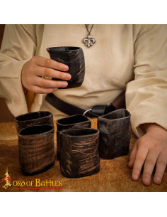 Transporta os sabores e a elegância da era viking com este exclusivo conjunto de copos medievais de chifre de búfalo polido. Cada copo, com capacidade de aproximadamente 68 ml, foi cuidadosamente esculpido e polido à mão, oferecendo um acabamento robusto e natural que reflete a essência dos antigos guerreiros do norte. Ideal para apreciar bebidas frias como hidromel, cerveja, uísque, rum ou schnapps, estes copos convidam você a reviver as celebrações nas salas de banquetes vikings, onde cada brinde era um ato de honra e camaradagem.