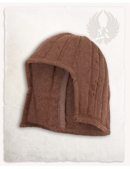Cofia medieval acolchada protetora modelo Arthur, cor marrom