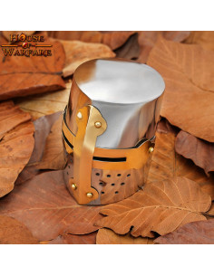 Quer dar um toque de história e elegância à sua casa ou espaço de trabalho, então precisa do nosso Capacete Mini Medieval Crusaders com Suporte em Madeira e todo o luxo dos detalhes. Este mini elmo é uma réplica exata dos elmos usados pelos cruzados na Idade Média e vem com um suporte de madeira feito sob medida para exibição orgulhosa.
