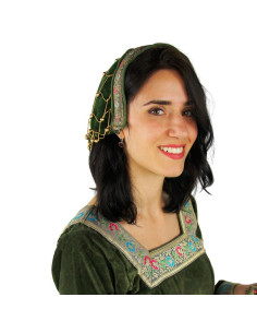 Descubra a elegância e distinção do nobre Coif em veludo verde. Esse acessório, inspirado na nobreza medieval, é confeccionado em veludo macio e possui delicada rede. O seu design clássico e sofisticado irá transportá-lo para tempos idos.