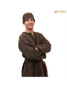 Graças ao seu design ajustado, ele permanecerá no lugar mesmo nos momentos de maior atividade, seja participando de eventos de recriação histórica como LARP, SCA ou simplesmente desfrutando de um dia ao ar livre com um toque viking autêntico. Sua cor marrom natural e a textura da lã conferem um visual rústico e versátil que combina perfeitamente com qualquer traje de época.
