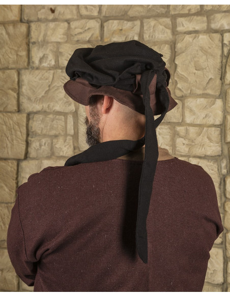 Boina medieval em algodão modelo Rupert, cor preto-marrom