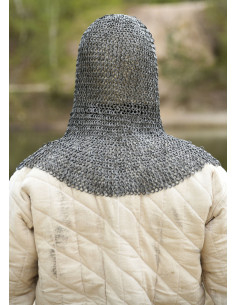 Imagine sentir a proteção autêntica que acompanhou valentes guerreiros por séculos, desde os sombrios tempos da Idade das Trevas até a complexidade da nobreza medieval tardia. Este verdugo de malha, com sua abertura facial quadrada, não só cobre seu pescoço e ombros com total segurança, mas também oferece uma sensação de confiança a cada movimento.