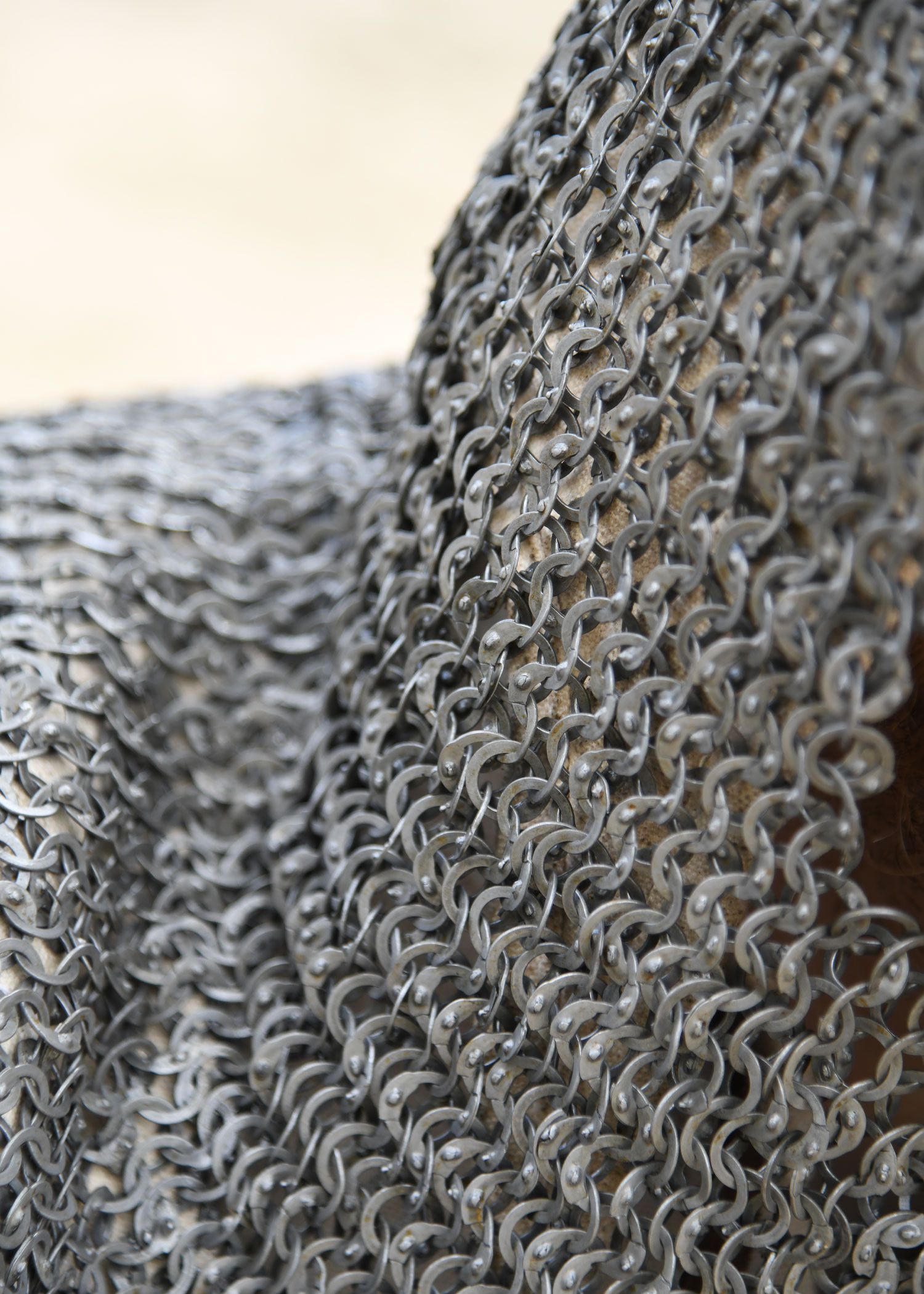 A estrutura tecida em um padrão 4 em 1, formada por argolas planas e cuidadosamente remachadas, garante uma resistência excepcional sem sacrificar o conforto. Seu acabamento natural e envernizado mantém a malha flexível e pronta para enfrentar qualquer desafio, proporcionando liberdade para manobrar com agilidade enquanto o mantém protegido.