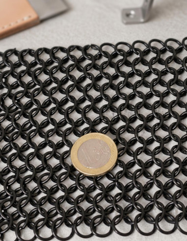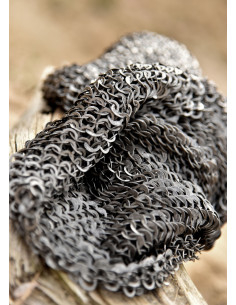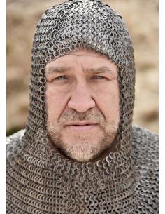 Seu design com abertura facial quadrada não só garante uma visão ótima, mas também mantém a autenticidade histórica das armaduras da época. Graças à técnica única de malha FWM, que combina anéis planos soldados e perfurados alternados, esta peça oferece uma proteção resistente sem sacrificar leveza, permitindo que você se mova com agilidade mesmo em situações exigentes.