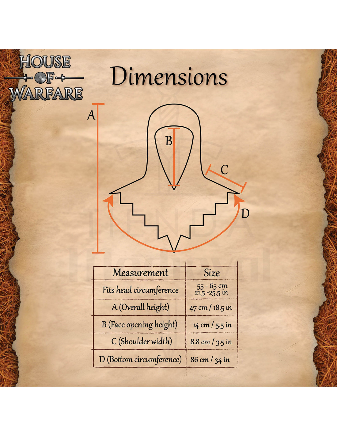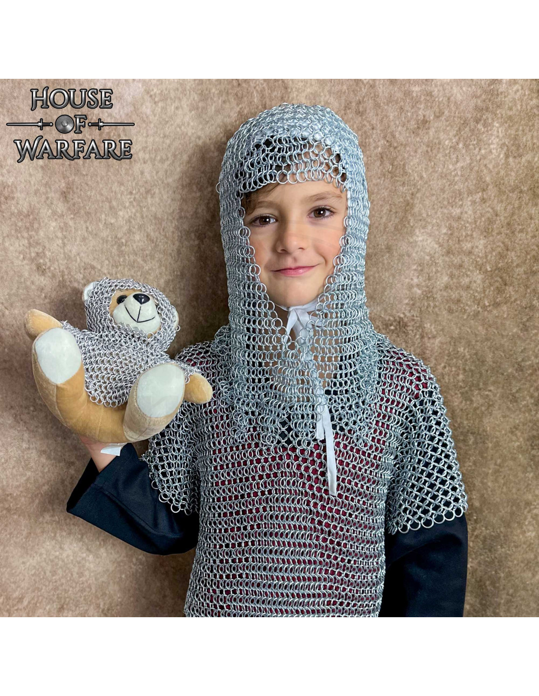 A borda com acabamento irregular nos ombros traz um detalhe visual que valoriza qualquer fantasia ou recriação, adicionando movimento e autenticidade a cada passo. Seu design permite combiná-la com uma touca acolchoada ou capacete infantil para completar uma encenação mais realista sem complicações.