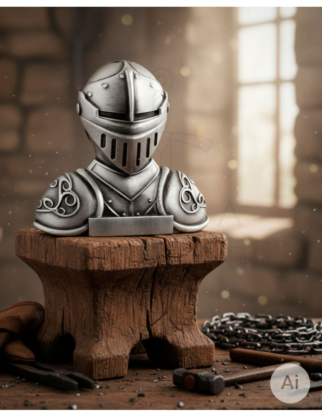 O pack também inclui um suporte com forma de capacete medieval, projetado com acabamento prateado brilhante e detalhes em relevo que evocam a armadura de um cavaleiro. Este suporte não só proporciona organização e comodidade, mas também acrescenta um toque decorativo com personalidade ao seu escritório ou estante. Sua base firme garante estabilidade e resistência no uso diário. Com a qualidade garantida da Tole10 Imperial, este conjunto é ideal tanto para amantes da história e cultura medieval quanto para quem deseja um objeto funcional com um design singular.