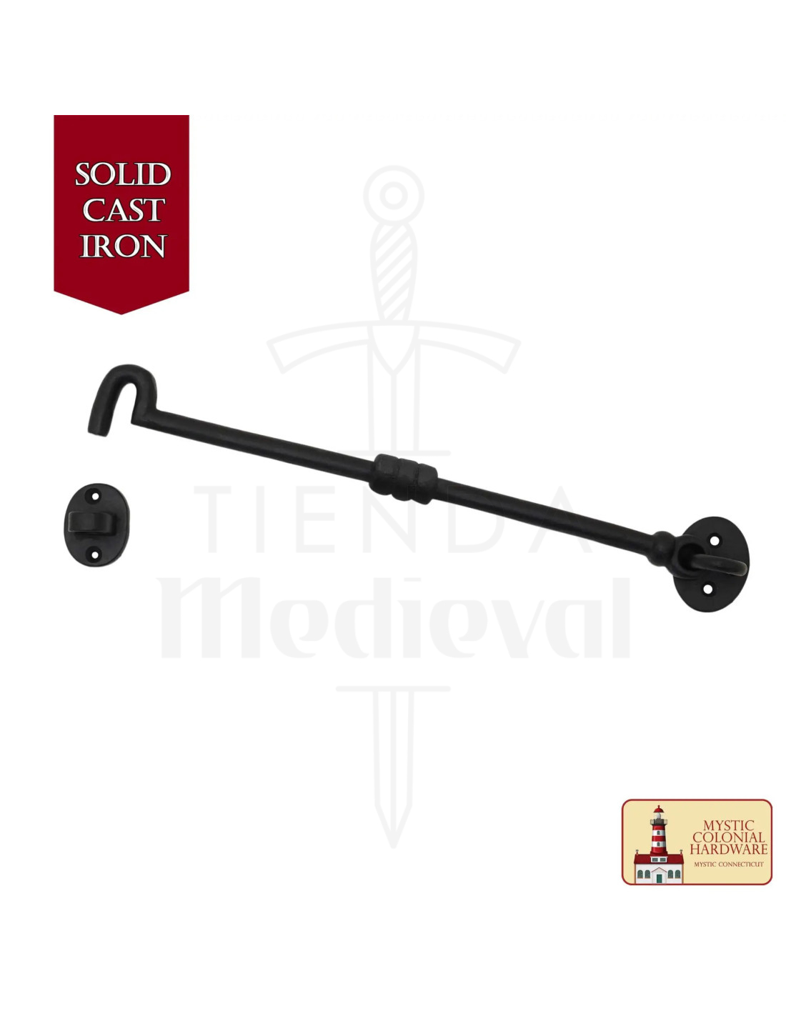 O fecho oferece uma aparência rústica e medieval que traz personalidade sem perder funcionalidade. O acabamento escurecido realça a textura fundida, criando um contraste elegante com portas de madeira envelhecida, portões de jardim ou móveis com alma vintage.