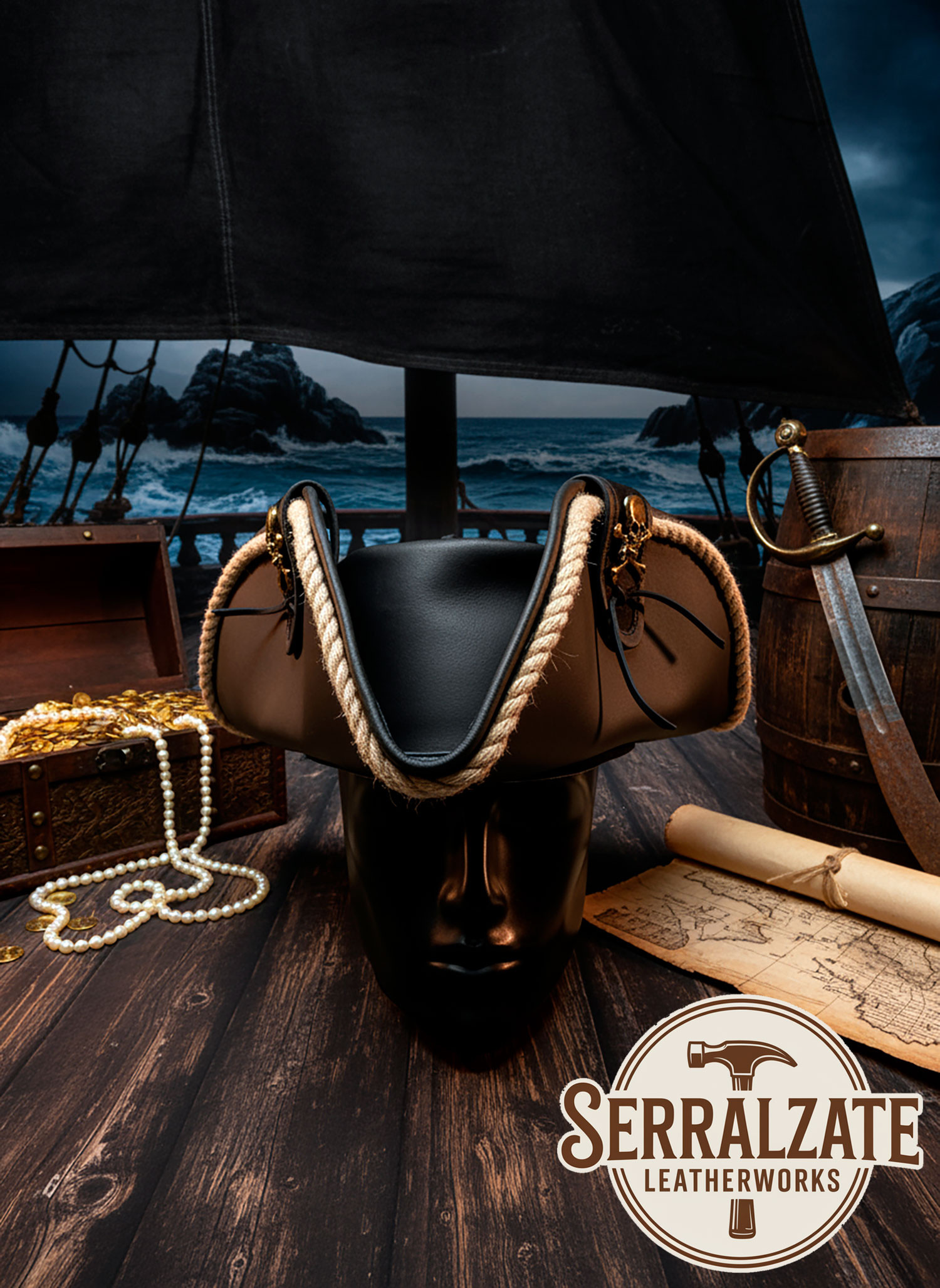 Aproveite o conforto e a durabilidade oferecidos pelo seu material de couro, pensado para resistir às aventuras mais dinâmicas sem perder seu estilo. Graças ao seu design, este chapéu não será apenas um acessório chamativo, mas uma peça que se destacará em qualquer evento, fazendo de você o centro das atenções enquanto conquista cada momento com um toque de ousadia e caráter. Transforme cada ocasião em uma verdadeira odisseia com o chapéu que inspira todo pirata audaz!