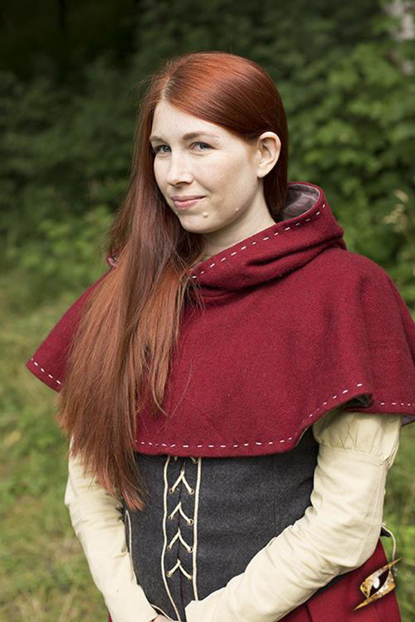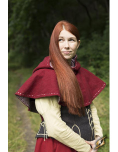 Capuz medieval com dragonas, vermelho escuro