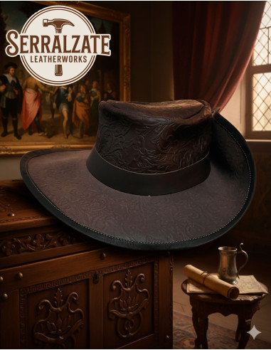 O chapéu medieval de couro modelo Flandres na cor marrom é uma peça excepcionalmente elaborada, ideal para quem busca um toque de autenticidade e estilo em seu visual. Confeccionado à mão na Espanha, este chapéu utiliza couro de alta qualidade, garantindo tanto sua durabilidade quanto uma textura suave e confortável. Seu design destaca-se por uma superfície finamente trabalhada em relevo e uma aba ampla que confere caráter e protege do sol, finalizado com uma moeda de aparência antiga que adiciona um detalhe de distinção e robustez.