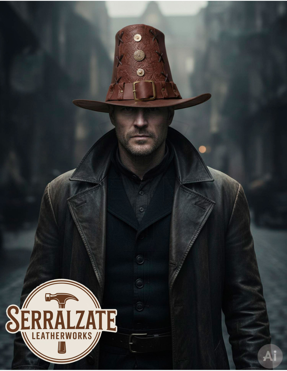 Cada chapéu é fabricado com couro selecionado localmente e acabamentos pensados para uso contínuo, por isso você verá costuras duplas e ilhós reforçados que garantem resistência em longos dias de recreação, casamentos temáticos ou LARP. O resultado é uma peça confortável, fácil de adaptar e pronta para te acompanhar de evento em evento.