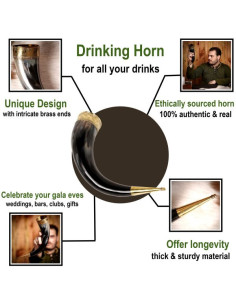 Escolha qualidade, autenticidade e estilo com nosso chifre de beber Viking com decorações de latão. Não espere mais, adquira o seu hoje!
