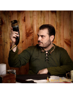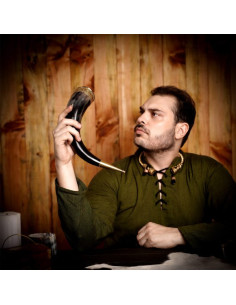 Descubra o nosso corno viking com decorações em latão, uma verdadeira joia medieval que o transportará para o tempo dos bravos guerreiros do norte. Este chifre é meticulosamente feito à mão a partir de chifre bovino REAL e de origem ética, dando-lhe autenticidade e um espírito único.