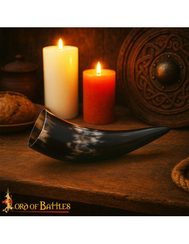 Esta buzina Viking, modelo Dama Elegante com capacidade para 250 ml, é o complemento perfeito para os seus eventos medievais ou festas temáticas. Seu tamanho foi cuidadosamente selecionado para oferecer uma capacidade ideal que lhe permitirá desfrutar de suas bebidas favoritas, seja uma boa cerveja ou um hidromel, sem se preocupar com recargas constantes. Além disso, é leve o suficiente para ser facilmente transportado em qualquer evento, sendo uma opção prática e autêntica.