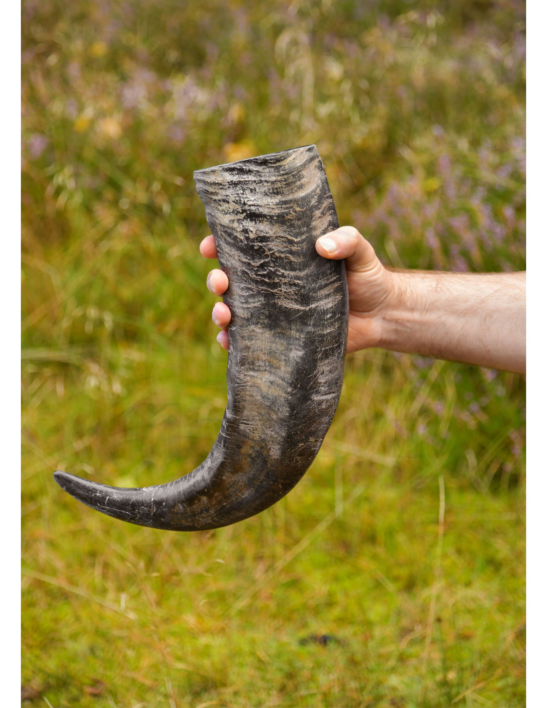 Este Chifre Viking de Búfalo para Recreação Histórica combina autenticidade e presença, elaborado a mão a partir de chifre natural de búfalo. Sua forma curva, com a base larga e a ponta estreita, e suas veias em tons de bege, marrom e negro oferecem um acabamento único que adiciona caráter à sua coleção ou fantasia sem necessidade de adornos adicionais.