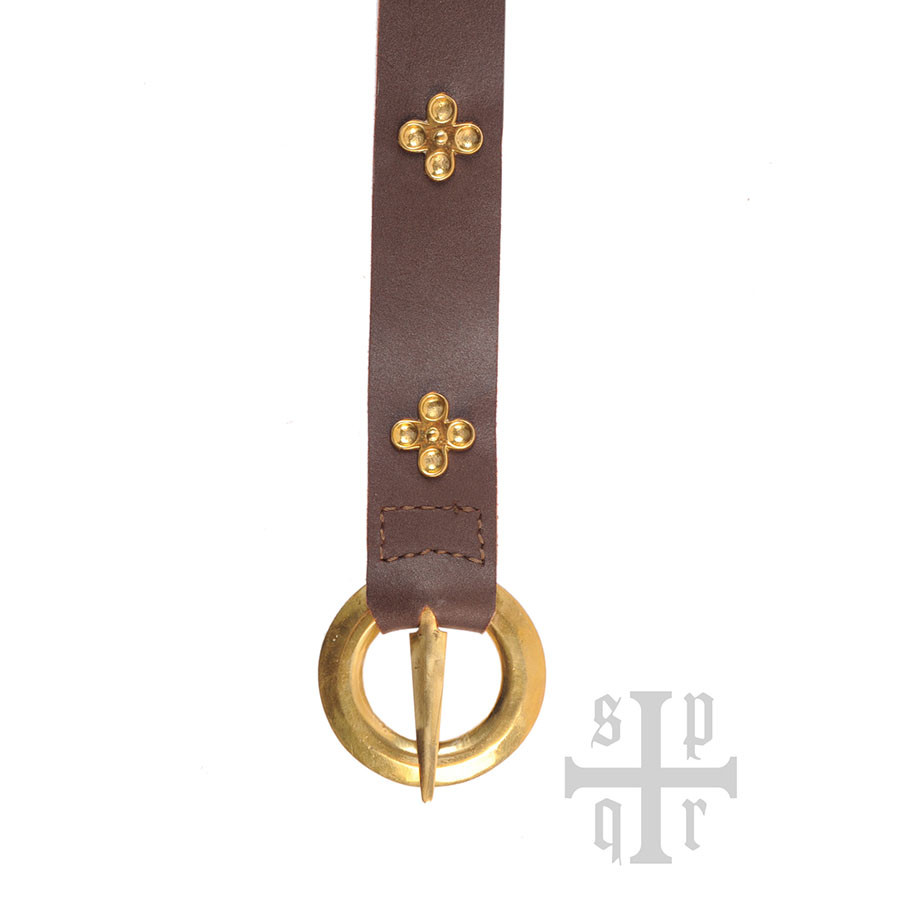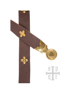 Cinto de couro medieval com fivela de latão, castanho (135 cm.)