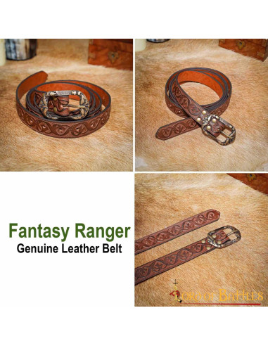 Cinto medieval em couro marrom avermelhado com desenho floral