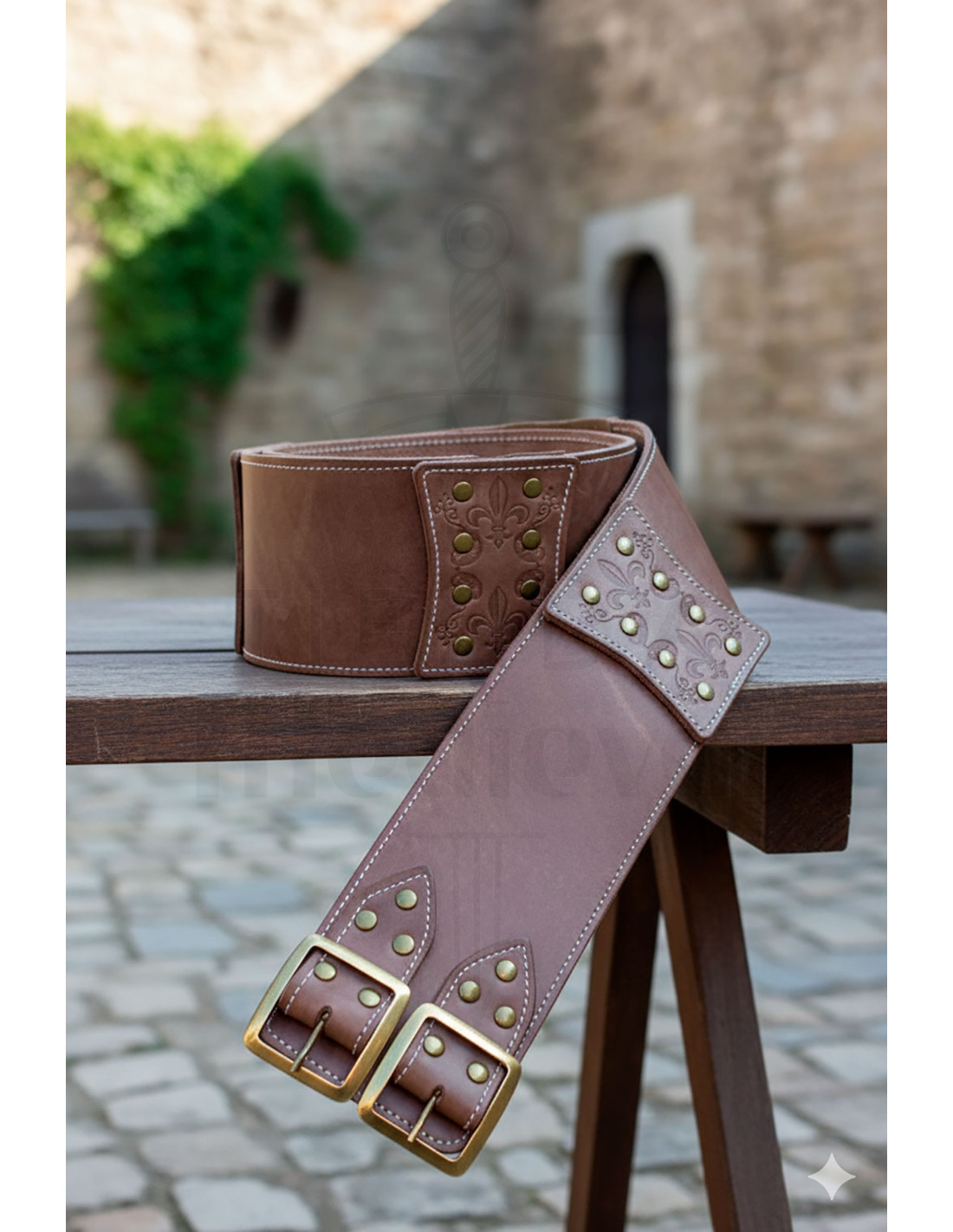 Fabricado em couro grosso com uma largura de 10 cm, o Cinto Medieval Lombardo garante forte fixação e estabilidade. Não importa qual atividade você realize, seja um evento de LARP, uma convenção temática ou simplesmente uma ocasião especial, este cinto manterá você seguro e com estilo.
