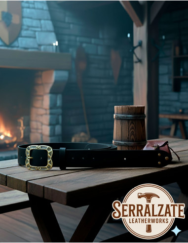 Cinto medieval de couro modelo Mateo, Preto