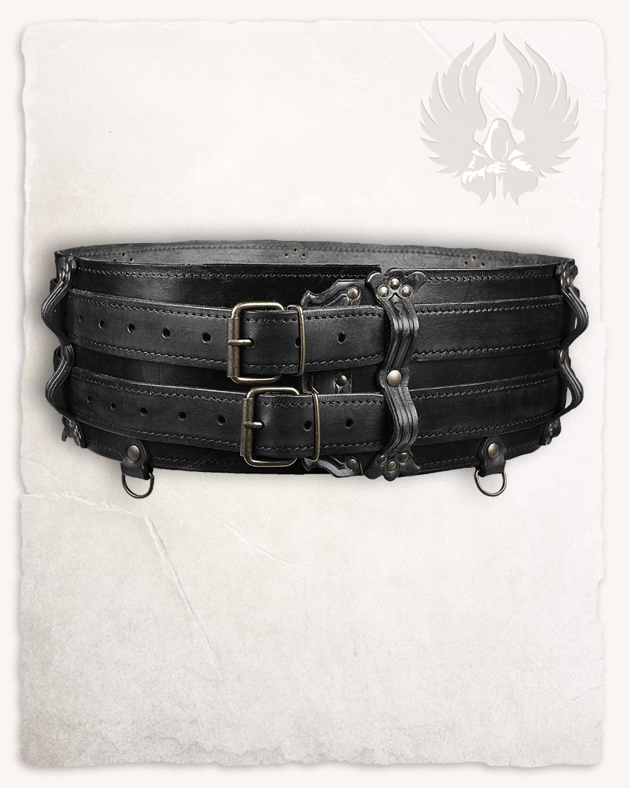 Cinto medieval duplo em couro Modelo Luthor, cor preta