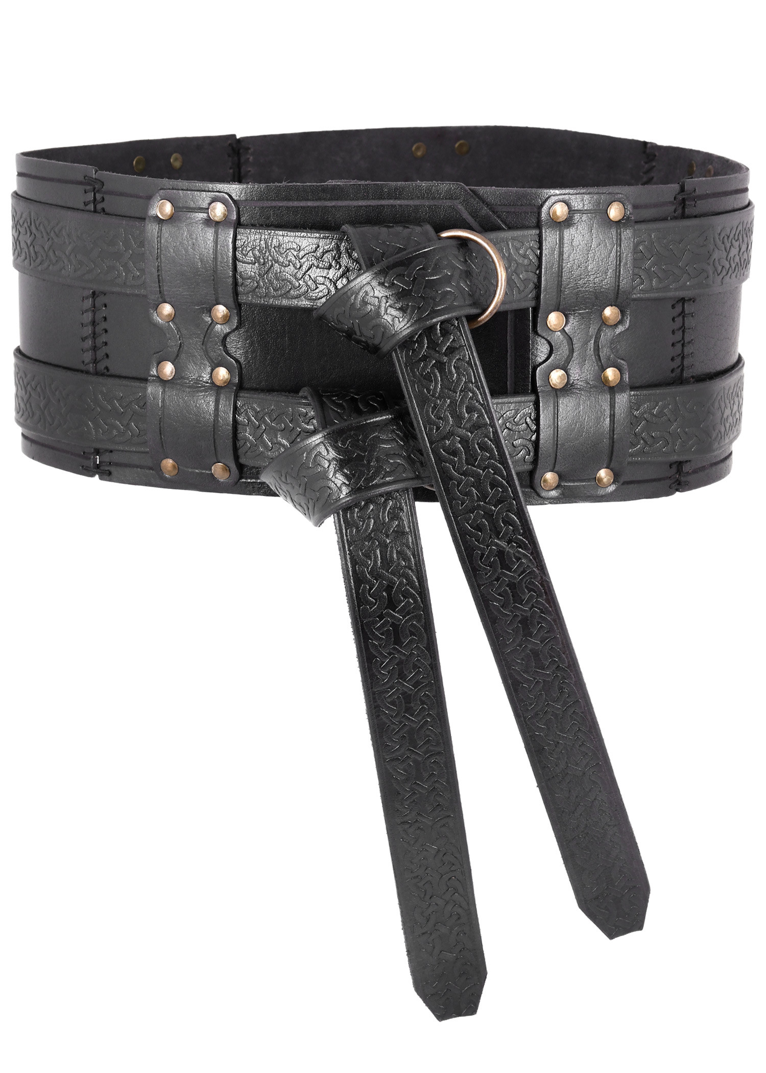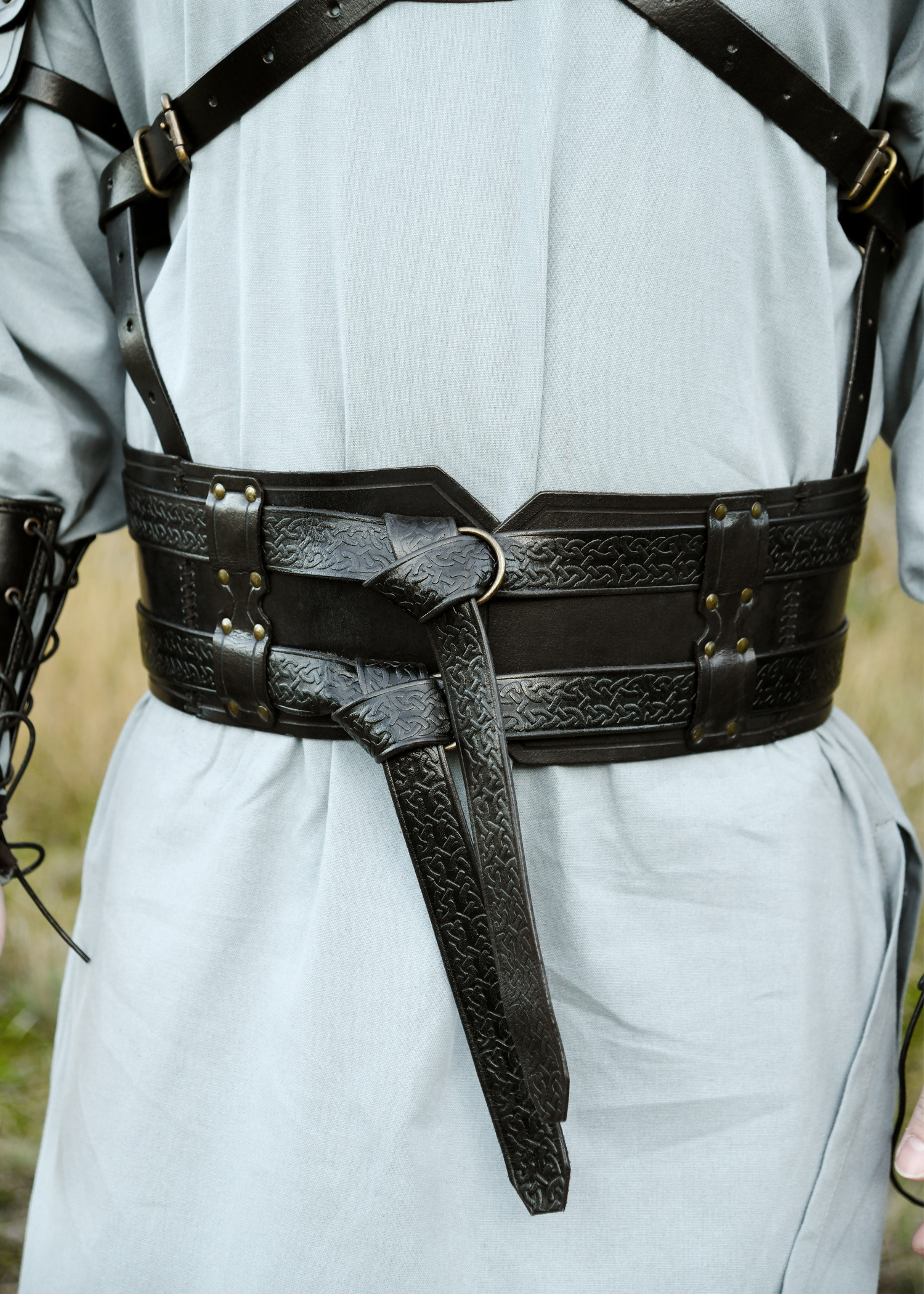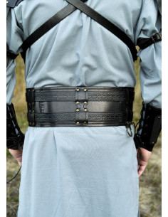 Cinto medieval duplo de couro modelo Balor, cor preta