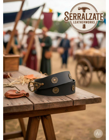 Cinto Medieval de Couro com Rebites para LARP, preto